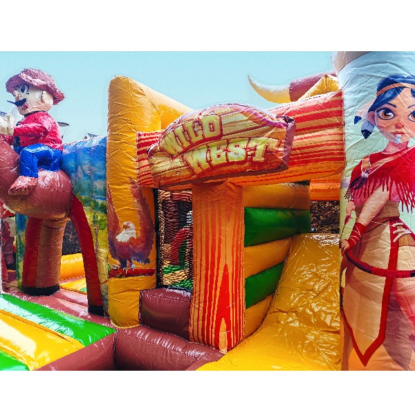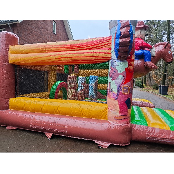 Dit multiplay springkussen is voorzien van leuke elementen zoals een paard voorop het springkussen en cactussen. Binnenin vind je speelse obstakels en een glijbaan, zodat kinderen zich urenlang kunnen uitleven. Dankzij het overdekte dak kunnen ze ook bij minder weer droog blijven springen. Ideaal voor kleine cowboys en cowgirls die wel van een beetje avontuur houden!